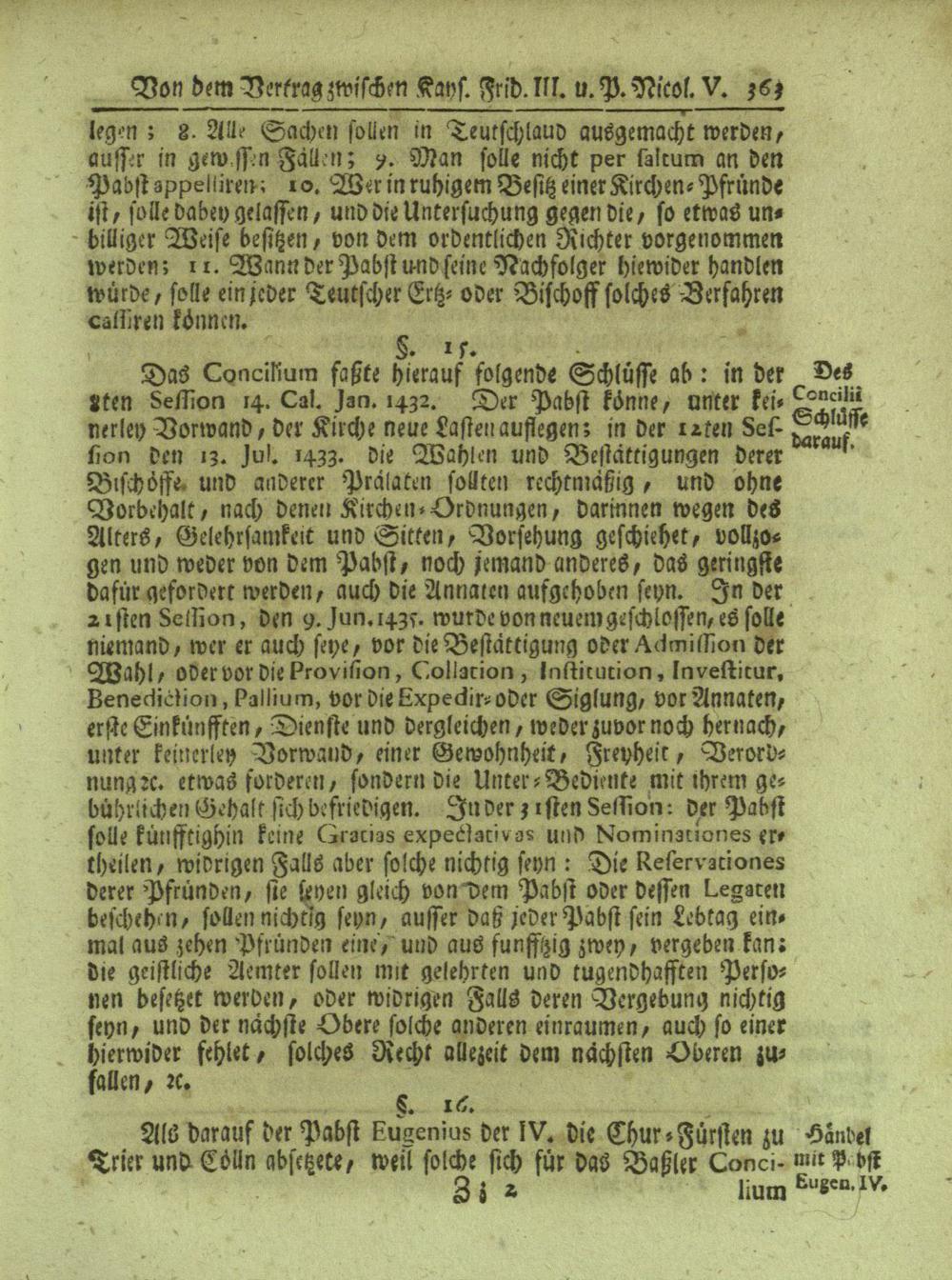 Achtzehendes Capitel: Von dem Vertrag zwischen Kayser Friderich III. und Pabst Nicolao V.