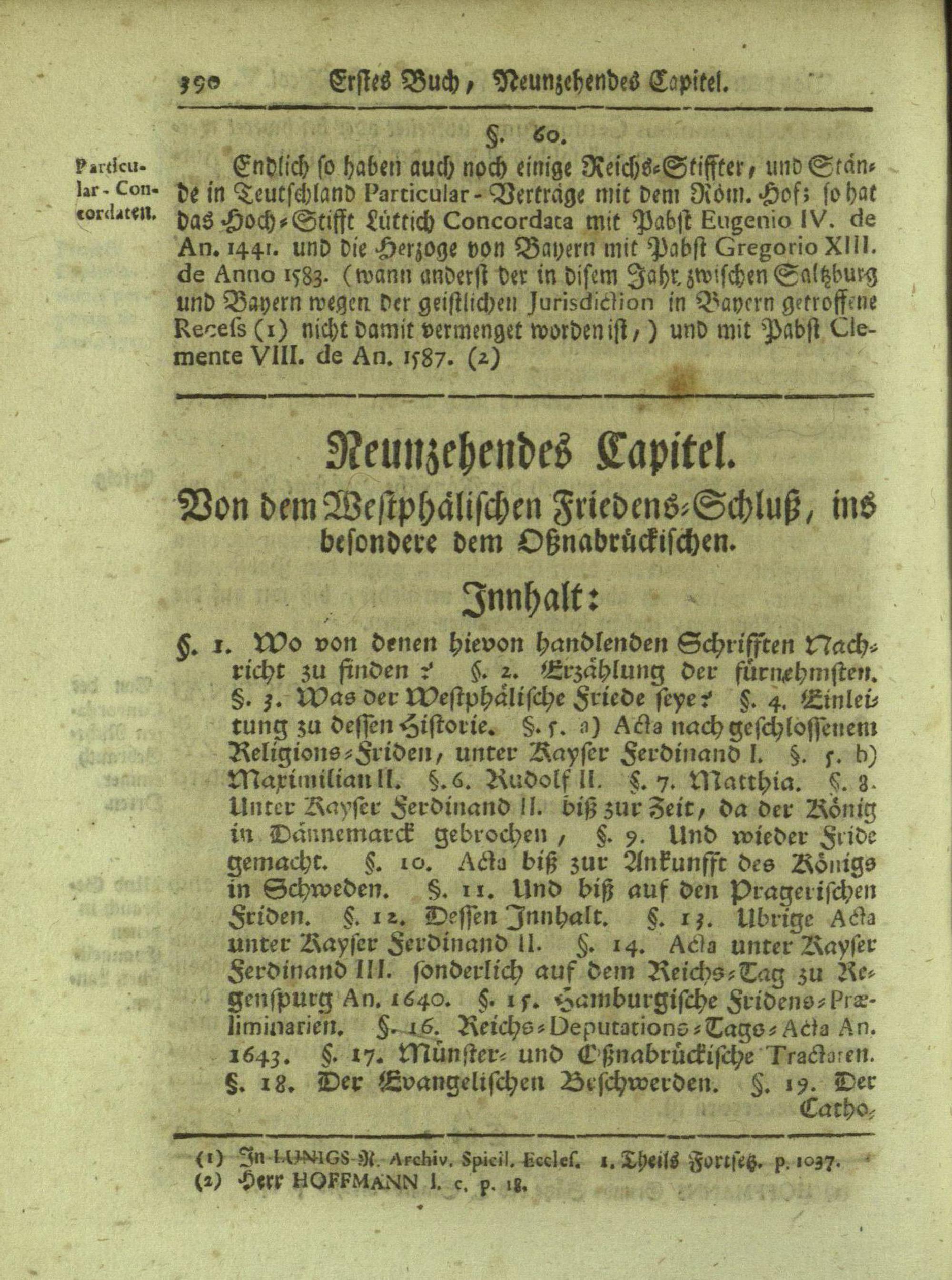 Neunzehendes Capitel: Von dem Westphälischen Friedens-Schluß, insbesondere dem Oßnabrückischen