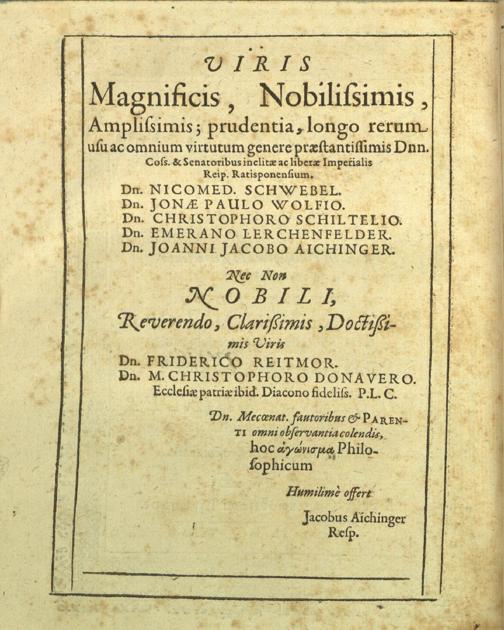 Mixtura quaestionum et positionum philosophicarum / ... sub praesidio Joannis Pauli Crusii ... conabitur Jacobus Aichinger